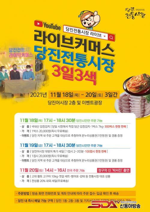 18Àϰú 19ÀÏ¿¡´Â ¿ÀÈÄ 5½ÃºÎÅÍ 6½Ã 30ºÐ±îÁö °¢°¢ ±¹³»»ê Àç·á·Î¸¸ ¸¸µç ±èÀå±èÄ¡(300¹Ú½º ÇÑÁ¤)¿Í ´ë¹æ¾îȸ(100Á¢½Ã ÇÑÁ¤)¸¦ ¿Â¶óÀÎ(À¯Æ©ºê °Ë»ö: ´çÁøÀüÅë½ÃÀå ¶óÀ̺ê)À¸·Î¸¸ ÆÇ¸ÅÇϰí, 20ÀÏ¿¡´Â À峯À» ¸Â¾Æ À̺¥Æ®±¤Àå¿¡¼ ¿ÀÈÄ 2½ÃºÎÅÍ 4½Ã±îÁö ´çÁøÀÇ ´ëÇ¥»óǰÀÎ °í´ë ȲÅä °í±¸¸¶, Á£°¥¼¼Æ®, ¹ð¾îÆ÷, °¨Å µîÀ» ÃÖ´ë 20% ÇÒÀÎÇØ ¿Â¡¤¿ÀÇÁ¶óÀÎÀ¸·Î ½Ç½Ã°£ ÆÇ¸ÅÇÒ ¿¹Á¤ÀÌ´Ù.