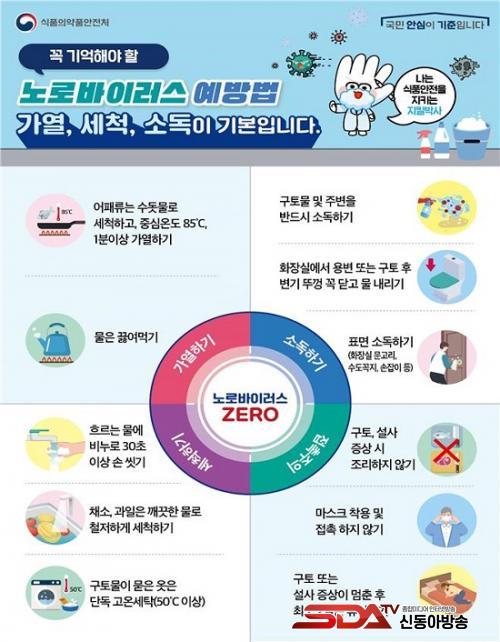 ³ë·Î¹ÙÀÌ·¯½º´Â ¿µÇÏ 20¡É ÀÌÇÏÀÇ ³·Àº ¿Âµµ¿¡¼µµ »ýÁ¸ÀÌ °¡´ÉÇϸç, ³ë·Î¹ÙÀÌ·¯½º¿¡ ¿À¿°µÈ À½½Ä¹°(¾îÆÐ·ù, ä¼Ò·ù)À̳ª ÁöÇϼö¸¦ ¼·ÃëÇ߰ųª °¨¿°ÀÚ¿ÍÀÇ Á÷¡¤°£Á¢ÀûÀÎ Á¢ÃËÀ¸·Îµµ ³ë·Î¹ÙÀÌ·¯½º°¡ ÀüÆÄµÇ¸ç °Ü¿ïö ³ë·Î¹ÙÀÌ·¯½º ½ÄÁßµ¶ ¹ß»ý ¿¹¹æÀ» À§ÇÑ ½Çõ ¿ä·É¿¡ ¸ÂÃç À½½Ä¹°À» ¼·ÃëÇØ¾ß Çϸç,³ë·Î¹ÙÀÌ·¯½º´Â ÀÔÀÚ°¡ ÀÛ°í Ç¥¸é ºÎÂø·ÂÀÌ °ÇϹǷΠºñ´© µî ¼¼Á¤Á¦¸¦ ÀÌ¿ëÇÏ¿© È帣´Â ¹°¿¡ 30ÃÊ ÀÌ»ó ¼Õ°¡¶ô, ¼Õµî±îÁö ±ú²ýÀÌ ¾Ä¾î¾ß ÇÑ´Ù.