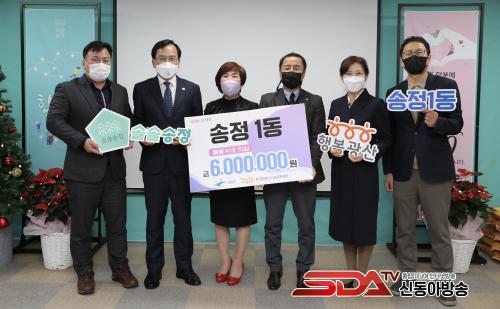ÁֹεéÀÌ ³ª´®¹®ÈÀç´Ü¿¡ 600¸¸ ¿øÀ» ±âŹÇÑ µ¥ ÀÌ¾î ¼ÛÁ¤»ç¶ûº´¿ø °ÜÀÚ¾¾ºÀ»çȸ¿Í ¿À¼º°ø¾÷»ç, ¼ÛÁ¤1µ¿ ±â°ü»çȸ´ÜüÀåÇùÀÇȸ´Â û¼Ò³â°ú ´ëÇлý¿¡°Ô ÀåÇбÝÀ» Àü´ÞÇß´Ù.