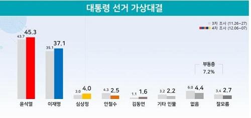 °¡»ó ¾çÀÚ ´ë°á¿¡¼ ÁöÁöÀ²Àº À± Èĺ¸ 46.9%, ÀÌ Èĺ¸ 42.0%·Î ³ªÅ¸³µ´Ù.