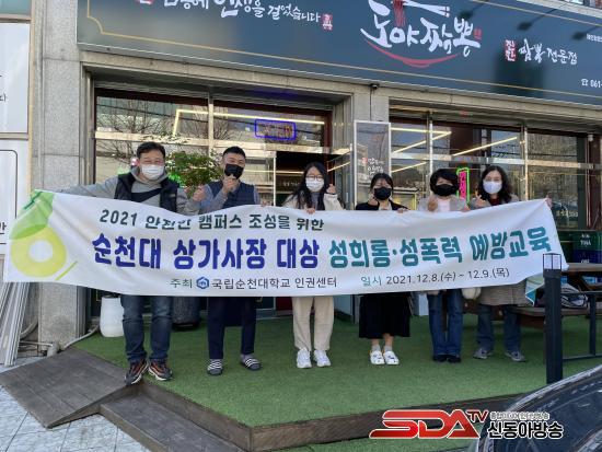 ¼øÃµ´ë ÀαǼ¾ÅÍ´Â Äڷγª19 ¿¹¹æÀ» À§ÇØ »ó°¡¸¦ Á÷Á¢ ¹æ¹®ÇÏ´Â ¼Ò±Ô¸ð ´ë¸é ±³À°À» ÅëÇØ ´ëÇа¡¿¡¼ ¹ß»ýÇÒ ¼ö ÀÖ´Â ¼ºÈñ·Õ¡¤¼ºÆø·Â ¿¹¹æ »ç·Ê¿Í ´ëÀÀ¹ý µîÀ» ¾È³»Çϰí, ±³À°À» À̼öÇÑ ´ëÇ¥µé¿¡°Ô À̼öÁõÀ» ¹ß±ÞÇÏ¿´´Ù.