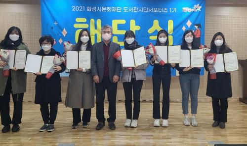 ÀÌÀç¿ø È­¼º½Ã¹®È­Àç´Ü µµ¼­°ü º»ºÎÀåÀº ¡°2021³â ÇÑ ÇØ µ¿¾È ¿­Á¤ÀûÀΠ½Ã¹Îµé°ú ÇÔ²² ¼­Æ÷ÅÍÁî È°µ¿À» ÇÔ²² ÇÒ ¼ö À־ ¸Å¿ì »ÑµíÇß°í, µµ¼­°ü ½Ã¹Î¼­Æ÷ÅÍÁî 1±â ´Ü¿øµé¿¡°Ô ½Ç½ÃÇÑ µµ¼­°ü ¹× »ç¾÷ ¸ð´ÏÅ͸µ Á¶»ç °á°ú¸¦ ¹ÙÅÁÀ¸·Î È°µ¿À» ¼öÁ¤Ç졒ʼ¸¿ÏÇÏ¿© 2022³â¿¡´Â ´õ¿í ¹ßÀüÇÏ¿© ¼­Æ÷ÅÍÁî È°µ¿À» ÁøÇàÇϰڴ١±¶ó°í ¹àÇû´Ù.
