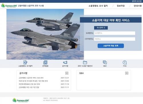 ±º¿ëºñÇàÀå ¼ÒÀ½ Áö¿ª Á¶È¸½Ã½ºÅÛ(kmnoise.samwooanc.com)¿¡ Á¢¼ÓÇØ ÀÚ½ÅÀÇÁÖ¼Ò¸¦ ÀÔ·ÂÇÏ¸é ¼ÒÀ½ ´ëÃ¥ Áö¿ª ÇØ´ç ¿©ºÎ¸¦ È®ÀÎÇÒ ¼ö ÀÖ´Ù.