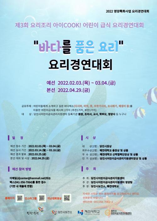 °ø¸ð Âü¿©´ë»óÀº ´çÁø °ü³» ¼¾Å͵î·Ï±â°üÀÇ ¿øÀå, Á¶¸®»ç, ±³»ç, Çкθð, ¿µ¾ç»ç µîÀ¸·Î ¿¹¼± Á¢¼ö±â°£Àº ´ÙÀ½ ´Þ 3ÀϺÎÅÍ 3¿ù 4ÀϱîÁöÀ̸ç, ¾î¸°ÀÌ¿¡°Ô ¼Ò°³ÇÏ°í ½ÍÀº ÇØÁ¶·ù¸¦ ÀÌ¿ëÇÑ ¾î¸°ÀÌ ±Þ½Ä¿ë ·¹½ÃÇÇ ÃÑ 2°¡Áö(ÁÖÂù 1°¡Áö, ºÎÂù 1°¡Áö)¸¦ Á¦ÃâÇÏ¸é µÈ´Ù.