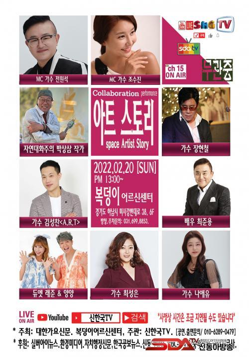 [½Åµ¿¾Æ¹æ¼Û=½Å°æ½Ä ±âÀÚ] À¯Æ©ºê ½ÅÇѱ¹TV(´ëÇ¥ ½ÅÇѱ¹) '¾ÆÆ®½ºÅ丮'°¡, Äڷγª19·Î ÁöÄ£ ±¹¹ÎÀ» À§·ÎÇÏ°í ±¹¹Î°ú ÇÔ²² ÇÏ´Â ¡®Èñ¸ÁÀÇ »õº½À» ºÎ¸£´Ù¡¯¸¦ ÁÖÁ¦·Î, »õÇØ, »õº½À» ºÎ¸£´Â °ø¿¬À» ÁøÇàÇÑ´Ù. ½ÅÇѱ¹TV(´ëÇ¥ ½ÅÇѱ¹)´Â, ¿À´Â 2¿ù 20ÀÏ ÀÏ¿äÀÏ ¿ÀÈÄ 13½Ã °æ±âµµ Çϳ²½Ã ¹Ì»ç¸® "º¹µ¢ÀÌ ¾î¸£½Å ¼¾ÅÍ"¿¡¼­, À¯Æ©ºê ¡®½ÅÇѱ¹TV¡¯Ã¤³ÎÀ» ÅëÇØ ½Ç½Ã°£ »ý¹æ¼ÛÀ¸·Î ÁøÇàµÉ ¿¹Á¤ÀÌ´Ù.