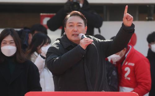 »çÁø=À±¼®¿­ ±¹¹ÎÀÇÈû ´ë¼± È帰¡ 17ÀÏ ¿ÀÈÄ °æ±âµµ ¼º³²½Ã ¾ßž¿ª ±¤Àå¿¡¼­ ¿­¸° 'ºÎÆÐ ¾ø´Â ¼º³²! °øÁ¤ÇÑ ´ëÇѹα¹!¡±°Å¸®À¯¼¼¿¡¼­ ÁöÁö¸¦ È£¼ÒÇϰí ÀÖ´Ù. [»çÁøÃâó=´º½º1]