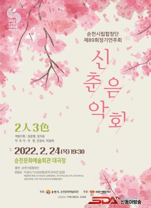 [½Åµ¿¾Æ¹æ¼Û=±è¿ëÈÆ ±âÀÚ] ¼øÃµ½Ã¸³ÇÕâ´ÜÀÌ ¿À´Â 2¿ù 24ÀÏ ¿ÀÈÄ 7½Ã 30ºÐ ¼øÃµ¹®È­¿¹¼úȸ°ü ´ë±ØÀå¿¡¼­ Á¦89ȸ Á¤±â¿¬ÁÖȸ(½ÅÃáÀ½¾Çȸ) ¡®2ÀÎ(ìÑ) 3»ö(ßä)¡¯À» ¼±º¸ÀδÙ.