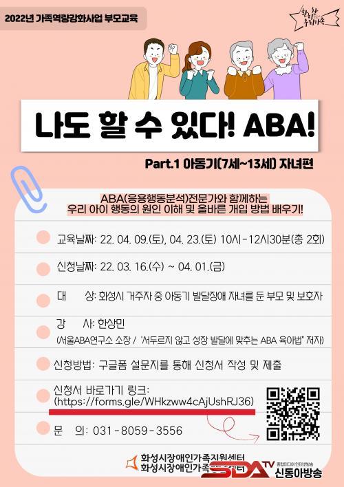 À̹ø ±³À°Àº 4¿ù 9Àϰú 23ÀÏ ¾çÀϰ£ ¡®³ªµµ ÇÒ ¼ö ÀÖ´Ù! ABA!¡¯¶ó´Â ÁÖÁ¦·Î ÇöÀå°ú ¿Â¶óÀο¡¼ µ¿½Ã¿¡ ÁøÇàµÈ´Ù.