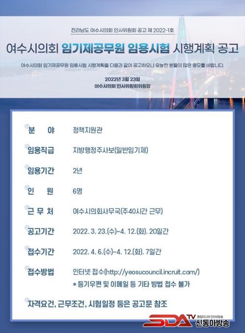 À̹ø ä¿ë½ÃÇè °ü·Ã ÀÚ¼¼ÇÑ ³»¿ëÀº ¿©¼ö½ÃÀÇȸ ȨÆäÀÌÁö ¿¡¼­ °ø°í¹®À» È®ÀÎÇϰųª ÀÇȸ»ç¹«±¹ Ãѹ«ÆÀÀ¸·Î ¹®ÀÇÇÏ¸é µÈ´Ù.