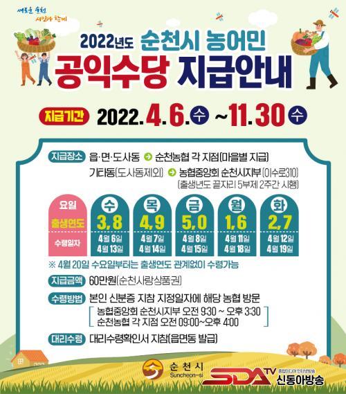 °øÀͼö´ç ¼ö·ÉÀº 4¿ù 6ÀϺÎÅÍ º»ÀÎ ½ÅºÐÁõÀ» ÁöÂüÇÏ¿©, µ¿Áö¿ªÀº Ãâ»ý¿¬µµ¿¡ µû¸¥ 5ºÎÁ¦¿¡ ¸ÂÃç ³óÇùÁß¾Óȸ ¼øÃµ½ÃÁöºÎ¿¡¼ ¹æ¹® ¼ö·ÉÇÒ ¼ö ÀÖÀ¸¸ç, À¾¸éÁö¿ª°ú µµ»çµ¿Àº ¸¶À»º° ÁöÁ¤µÈ ¼ö·É³¯Â¥¿¡ ¸ÂÃç ÁÖ¼ÒÁö ³óÇù¿¡¼ ¹æ¹®¼ö·ÉÇÏ¸é µÈ´Ù.