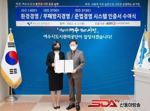 [½Åµ¿¾Æ¹æ¼Û=±è±â³² ±âÀÚ] ¿©¼ö½Ãµµ½Ã°ü¸®°ø´ÜÀº Çѱ¹°æ¿µÀÎÁõ¿øÀÇ ½É»ç¸¦ ¹Þ¾Æ ȯ°æ°æ¿µ½Ã½ºÅÛ(ISO 14001), ºÎÆÐ¹æÁö°æ¿µ½Ã½ºÅÛ(ISO 37001), Áعý°æ¿µ½Ã½ºÅÛ(ISO 37301) µî 3°³ ÀÎÁõÀ» ÃëµæÇϰí 4¿ù5ÀÏ ÀÎÁõ¼­ ¼ö¿©½ÄÀ» ÁøÇàÇß´Ù.