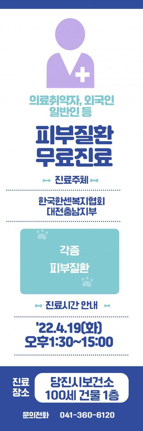 À̹ø ÇǺÎÁúȯ ¹«·á À̵¿Áø·á´Â ÇѼ¾º´À» Á¶±â¿¡ ¹ß°ßÇÏ¿© Ä¡·áÇÔÀ¸·Î ÇѼ¾º´ÀÇ ¹ß»ý ¹× À¯ÇàÀ» ¹æÁöÇϰí Àå¾Ö¸¦ ¿¹¹æÇϱâ À§ÇØ ¸¶·ÃµÇ¾úÀ¸¸ç 2022³â 4¿ù 19ÀÏ ¿ù¿äÀÏ ¿ÀÈÄ 13½Ã 30ºÎÅÍ 15½Ã±îÁö ¾à Çѽ𣠹ݿ¡ °ÉÃÄ ½Ç½ÃÇÏ¿´´Ù.
