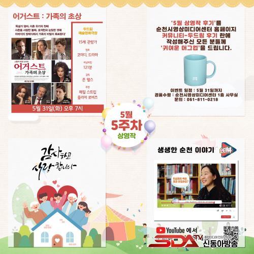 ¼øÃµ½Ã ¿µ»ó¹Ìµð¾î¼¾ÅÍ ¡®µÎµå¸²¡¯¿µÈ°üÀº ¸ÅÁÖ È¡¤¸ñ¿äÀÏ Àú³á 7½Ã¿¡ ¿ì¼ö µ¶¸³¿¹¼ú¿µÈ »ó¿µÈ¸ ¿Ü¿¡µµ ¿Â °¡Á·ÀÌ ÇÔ²²ÇÏ´Â ¹®ÈÇâÀ¯ÀÇ ±âȸ¸¦ ´Ã¸®±â À§ÇØ, ¸ÅÁÖ Åä¿äÀÏ ¿ÀÈÄ 1½Ã¿¡´Â ¾î¸°ÀÌ¿µÈ±ØÀå, ¿ÀÈÄ 3½Ã¿¡´Â ¾î¸£½Å¿µÈ±ØÀåÀ» ¿î¿µÇϰí ÀÖ´Ù.