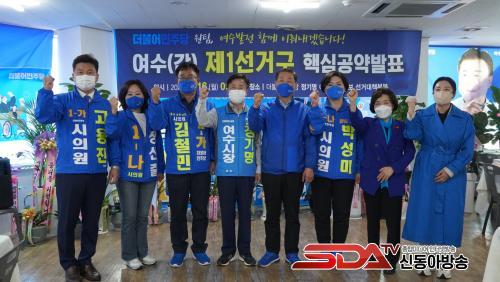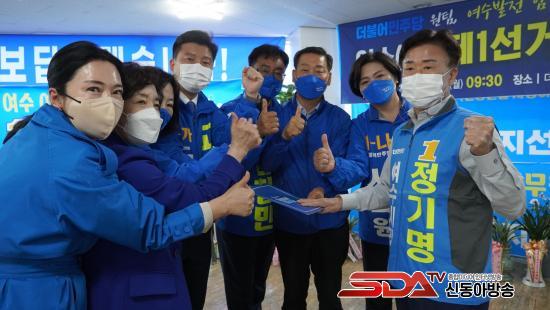 Á¤±â¸í ¹ÎÁÖ´ç ¿©¼ö½ÃÀå È帵µ ¡°µ¹»êÀ¾.»ï»ê¸é.³²¸é‧´ë±³µ¿.¿ùÈ£µ¿.±¹µ¿ Áֹεé°ú ´ç¿øµéÀÇ Àǰ߰ú ¹Ù¶÷ÀÌ ´ã±ä ÀúÈñ ´ç µµ¡¤½ÃÀÇ¿ø È帵éÀÇ °øÅë Çٽɰø¾àÀ» ¼ö¿ëÇØ ¿©¼ö¹ßÀüÀÇ µðµõµ¹·Î »ï°Ú´Ù¡±¸ç ¡°¹ÎÁÖ´ç ¼Ò¼Ó ½ÃÀå-µµÀÇ¿ø-½ÃÀÇ¿ø È帵éÀÌ ¼ÒÅë°ú ÅëÇÕÀÇ ¸®´õ½ÊÀ» ¹ßÈÖÇØ ¿øÆÀÀ¸·Î ¡®µçµçÇÑ Áö¹æÁ¤ºÎ, ¿©¼ö½Ã¡¯¸¦ ÇÔ²² ¸¸µé°í, ÇÔ²² ¹ßÀü½ÃÄÑ ³»°Ú´Ù¡±°í ¾à¼ÓÇß´Ù.