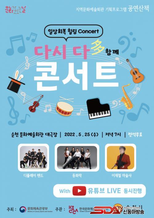 5¿ù 25ÀÏ ¿ÀÈÄ 7½Ã ¼øÃµ¹®È¿¹¼úȸ°ü ´ë±ØÀå, 6¿ù 29ÀÏ ¿ÀÈÄ 7½Ã Á¶·ÊÈ£¼ö°ø¿ø, 7¿ù 27ÀÏ ¿ÀÈÄ 5½Ã ¼øÃµ¸¸±¹°¡Á¤¿ø, 8¿ù 31ÀÏ ¿ÀÈÄ 4½Ã ¼øÃµµå¶ó¸¶ÃÔ¿µÀå, 9¿ù 28ÀÏ ¿ÀÈÄ 3½Ã ¼øÃµ¿©ÀÚ°íµîÇб³, 10¿ù 26ÀÏ ¿ÀÈÄ 3½Ã ¼øÃµ¸Å»ê°íµîÇб³¿¡¼ Ŭ·¡½Ä¡¤´ëÁß°¡¿ä °ø¿¬°ú Çö´ë¹Ì¼ú°ú À½¾Ç, ¸¶¼úÀ» Á¢¸ñÇÑ Äݶ󺸷¹ÀÌ¼Ç °ø¿¬ µî ´Ùä·Î¿î °ø¿¬ÇÁ·Î±×·¥À» ¿î¿µÇÑ´Ù.