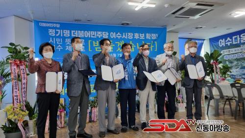 Á¤±â¸í ´õºÒ¾î¹ÎÁÖ´ç ¿©¼ö½ÃÀå È帴 Àλ縻À» ÅëÇØ ¡°Áö¿ª¿¡¼ ½ÅÀÓ¹Þ´Â °¢°è°¢Ãþ Àλçµé·Î ¼±°Å´ëÃ¥º»ºÎ¸¦ ²Ù¸° ¸¸Å À̹ø ¼±°Å¸¦ ¹Ýµå½Ã ½Â¸®·Î À̲ø°Ú´Ù.¡±¸é¼ ¡°ÈÇÕ°ú ÅëÇÕÀÇ ¿©¼ö¸¦ ¸¸µé¾î ÁøÁ¤ÇÑ 3·Á ÅëÇÕÀÇ ±æÀ» ¸¸µé¾î °¡ÀÚ.¡±°í ´çºÎÇß´Ù.