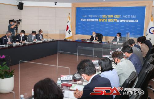 ȸÀǸ¦ ÁÖÀçÇÑ Á¤Çöº¹ ½ÃÀåÀº ¡°»çȸÀû °Å¸®µÎ±â°¡ ÇØÁ¦µÇ°í, Äڷγª È®»ê¼¼°¡ ´«¿¡ ¶ç°Ô ÁÙ¾îµé°í ÀÖÁö¸¸, ¾î¸£½ÅµéÀº ´Ã °ü½ÉÀ» °¡Áö°í »ìÆì¾ß ÇÑ´Ù¡±¸ç, ¡°3Â÷ Á¢Á¾À» ÇÑ ¾î¸£½ÅµéÀº Äڷγª19 4Â÷ ¿¹¹æÁ¢Á¾µµ ³õÄ¡Áö ¾Êµµ·Ï ã¾Æ´Ù´Ï¸ç ¾Ë·Á¾ß ÇÑ´Ù¡±°í ´çºÎÇß´Ù.