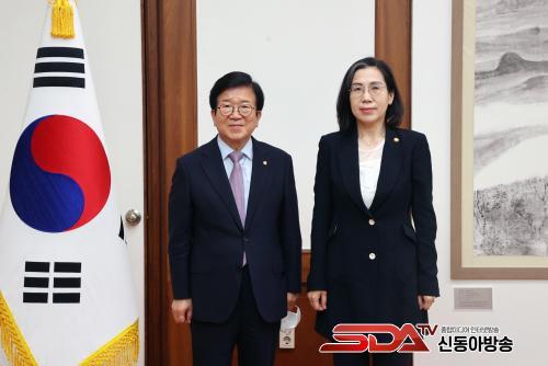 ¹Ú ÀÇÀåÀº À̳¯ ¿ÀÀü ±¹È¸ÀÇÀå Áý¹«½Ç¿¡¼ ±èÇö¼÷ ½ÅÀÓ ¿©¼º°¡Á·ºÎ Àå°üÀÇ ¿¹¹æÀ» ¹Þ°í ¡°¿©¼º°¡Á·ºÎ ÆóÁö´Â Á¤ºÎÁ¶Á÷¹ý ÀÔ¹ýÀÇ ¹®Á¦¡±¶ó¸ç ¡°´Ù¼ö´çÀÎ ¹ÎÁÖ´çÀÌ ¹Ý´ëÇÏ¸é ¾î·Æ´Ù. ±¹È¸¿Í Àß ÇùÀÇÇØÁÖ½Ã±æ ¹Ù¶õ´Ù¡±°í ´çºÎÇß´Ù.