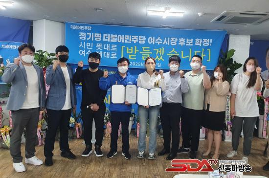¿©¼ö½Ãû °ø¹«Á÷³ëµ¿Á¶ÇÕ(¹Ú°èÀÏ ÁöºÎÀå) Á¶ÇÕ¿ø 30¿© ¸íÀº 25ÀÏ ¿ÀÈÄ 6½Ã 30ºÐ Á¤±â¸í ¿©¼ö½ÃÀå Èĺ¸ Ä·ÇÁ¿¡¼ °£´ãȸ¸¦ °®°í, 500¿© ¸íÀÇ ³ëÁ¶¿øµéÀ» ´ëÇ¥ÇÏ¿© Á¤ Èĺ¸ ÁöÁö¸¦ ¼±¾ðÇß´Ù.