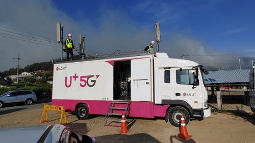 Àü³¯ LGÀ¯Ç÷¯½º´Â »êºÒ Áø¾ÐÀ» À§ÇÑ ÅëÇÕÁöÈÖº»ºÎ°¡ ²Ù·ÁÁø ¹Ð¾ç½Ã ºÎºÏ¸é Ãáȸ®¿¡ À̵¿½Ä ±âÁö±¹ Â÷·®À» ±ÞÆÄÇßÀ¸¸ç, ¿øÈ°ÇÑ À̵¿Åë½Å ¼ºñ½º¸¦ ¿î¿µ ÁßÀÌ´Ù.