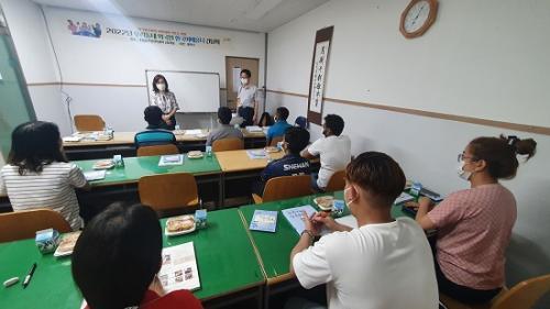 À̹ø ¿Ü±¹ÀÎ ÁֹΠ¹è¿òÅÍ Çѱ¹¾î±³À°Àº 7¿ù 5ÀϺÎÅÍ 12¿ù 1ÀϱîÁö 5°³¿ù µ¿¾È ¸ÅÁÖ È¡¤¸ñ ¿ÀÈÄ 7½ÃºÎÅÍ ¿ÀÈÄ 8½Ã 30ºÐ±îÁö ¿¸®¸ç Áö³ 5ÀÏ¿¡´Â ¾ÕÀ¸·Î ÁøÇàÇÒ Çѱ¹¾î±³À°¿¡ ´ëÇÑ ÇнÀ ¹æÇâ, ÇнÀ ³»¿ë µî¿¡ ´ëÇØ ¾È³»ÇÏ´Â ¿À¸®¿£Å×ÀÌ¼Ç ÈÄ Çѱ¹¾î ¼ö¾÷À» ÁøÇàÇß´Ù.