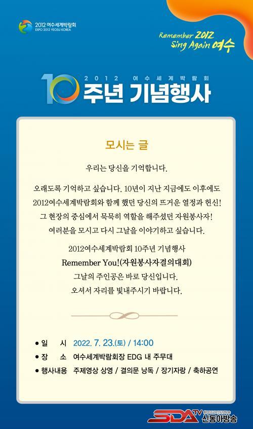 ÇÑÆí, 2012¿©¼ö¼¼°è¹Ú¶÷ȸ 10Áֳ⠱â³äÇà»ç´Â 7¿ù 22ÀϺÎÅÍ 31ÀϱîÁö 10Àϰ£ ¹Ú¶÷ȸÀå°ú ¿©¼ö½Ã ÀÏ¿ø¿¡¼ °³ÃֵȴÙ.