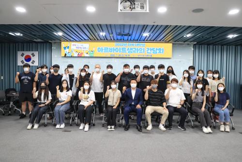 À̳¯ °£´ãȸ´Â ¿À´Â 29ÀϱîÁö ¾Æ¸£¹ÙÀÌÆ®¿¡ Âü¿©ÇÏ´Â ´ëÇлý 30¸íÀÌ Âü¼®ÇÑ °¡¿îµ¥ ½Ã¿¡¼ ÃßÁø ÁßÀÎ ´ëÇлý Áö¿ø »ç¾÷ ¾È³»¿¡ À̾î ÇлýµéÀÇ ¼Ò°¨ ¹ßÇ¥¿Í ¿À¼ºÈ¯ ´çÁø½ÃÀå°ú ÀÚÀ¯·Ó°Ô ´ëÈÇÏ´Â ½Ã°£À» °¡Á³´Ù.