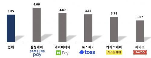 Á¶»ç´ë»ó 5°³ °£Æí°áÁ¦ ¼ºñ½ºÀÇ Á¾ÇÕ¸¸Á·µµ´Â Æò±Õ 3.85Á¡À̸ç, »ç¾÷ÀÚº°·Î´Â »ï¼ºÆäÀÌ(4.06Á¡)°¡ °¡Àå ³ô¾Ò°í, ³×À̹öÆäÀÌ(3.89Á¡), Å佺ÆäÀÌ(3.86Á¡), īī¿ÀÆäÀÌ(3.78Á¡), ÆäÀÌÄÚ(3.67Á¡) ¼øÀ̾ú´Ù.