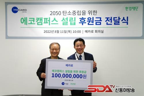 ȯ°æÀç´Ü(ÀÌ»çÀå ÃÖ¿)Àº ¸ÞÄ«·Î(´ëÇ¥ ÀÌÀçÁ¤)·ÎºÎÅÍ 8¿ù 11ÀÏ ¡®2050 ź¼ÒÁ߸³À» À§ÇÑ ¿¡ÄÚÄ·ÆÛ½º¡¯ ¼³¸³ ÈÄ¿ø±Ý 1¾ï ¿øÀ» Àü´Þ¹Þ¾Ò´Ù°í ¹àÇû´Ù. ¸ÞÄ«·Î´Â ±ÝÀÏ º»»ç¿¡¼ Àü´Þ½ÄÀ» ¿°í ȯ°æÀç´Ü¿¡ ÈÄ¿ø±ÝÀ» Àü´ÞÇß´Ù.