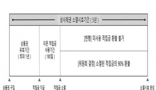 Çѱ¹¼ÒºñÀÚ¿ø ¼ÒºñÀÚºÐÀïÁ¶Á¤À§¿øÈ¸(À§¿øÀå º¯¿õÀç, ÀÌÇÏ ¡®À§¿øÈ¸¡¯)´Â À¯È¿±â°£ÀÌ °æ°úÇÑ ½ÅÀ¯Çü»óǰ±Ç(ÀÌÇÏ ¡®»óǰ±Ç¡¯)°ú °ü·ÃÇÏ¿© ¡®»óǰ±Ç ±¸¸Å±Ý¾×À» Àû¸³±ÝÀ¸·Î Áö±ÞÇÏ´Â »ç¾÷ÀÚÀÇ È¯ºÒÁ¤Ã¥¿¡ µû¶ó Àû¸³µÈ ±Ý¾×(ÀÌÇÏ ¡¯Àû¸³±Ý¡®)À» »ç¿ë±âÇÑ ³» »ç¿ëÇÏÁö ¸øÇØ ¼Ò¸êµÈ °æ¿ì¿¡µµ »ó»çä±Ç ¼Ò¸ê½ÃÈ¿±â°£(5³â)ÀÌ °æ°úÇÏÁö ¾Ê¾Ò´Ù¸é ÇØ´ç Àû¸³±ÝÀÇ 90%¸¦ ȯ±ÞÇØ¾ß ÇÑ´Ù.¡¯°í °áÁ¤Çß´Ù.