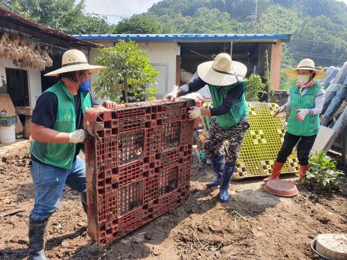 ´çÁø »õ¸¶À»°¡Á· 28¸íÀº ¼öÇØ ÇÇÇØ¸¦ ÀÔÀº Æ÷µµ¹çÀÇ Åä»ç¹° ¹× ºñ´Ò Á¦°ÅÀÛ¾÷¿¡ ±¸½½¶¡À» Èê·È´Ù.