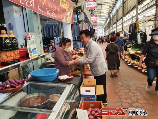 [½Åµ¿¾Æ¹æ¼Û=±è±â³² ±âÀÚ] Á¤±â¸í ¿©¼ö½ÃÀåÀÌ 7ÀÏ ¿ÀÀü ÀüÅë½ÃÀåÀ» ¹æ¹®ÇØ »óÀεéÀ» °Ý·ÁÇÏ°í ¾Ö·Î»çÇ×À» µè´Â µî Ãß¼® ´ë¸ñ ¡®¹Î»ý»ì¸®±â¡¯¿¡ ³ª¼¹´Ù.