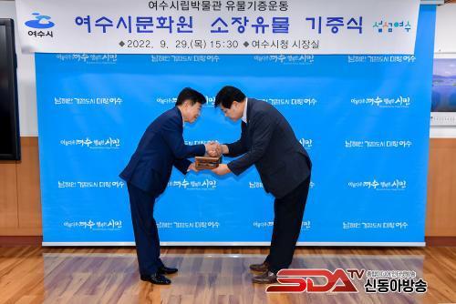 »çÁø= ¿©¼ö½Ã¹®È­¿øÀÌ º¸¹° Á¦571È£ÀÎ ¿©¼öÅëÁ¦À̰ø¼ö±º´ëøºñ(÷Öð¤ì°Íëâ©ÏÚÓÞôßÝø) Źº» µî ¼ÒÀå À¯¹° 42Á¡À» ¿©¼ö½Ã(½Ã¸³¹Ú¹°°ü)¿¡ ±âÁõÇß´Ù.