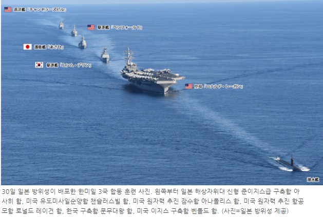ºÏÀÇ ºÒÆíÇÔ°ú º°°³·Î, À̹ø ÇÑ¡¤¹Ì¡¤ÀÏ ÇØ»óÈÆ·ÃÀÌ ¿ì·Á°¡ µÇ´Â °ÍÀº, ÇѹÌÇ÷¸Í°£ÀÇ Çѹݵµ Á¤º¸°øÀ¯´Â °¡´ÉÇϳª, µ¶µµ¸¦ µÎ°í ¿µÀ¯±Ç ºÐÀïÀ» ¹úÀ̰í ÀÖ´Â Àû¼º±¹ ÀϺ»°ú µ¶µµ ¾Õ ¹Ù´Ù Àá¼öÇÔ ¼÷ÁöÁöÇü°ú ±º»çÁ¤º¸¸¦ °øÀ¯Çؼ± ¾È µÇ´Â °ÍÀº, ¿ì¸®°¡ ºÏÇÑ, Áß±¹°ú ±º»çÁ¤º¸¸¦ °øÀ¯ÇÏ¸é ¾È µÇ´Â °Í°ú °°Àº ÀÌÄ¡´Ù.