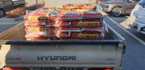Áö³ 4ÀÏ ¸éõ ÇàÁ¤º¹Áö¼¾ÅÍ¿¡ ¸ðÀÚ¸¦ ´·¯¾´ ÇÑ Á߳⠳²¼ºÀÌ Ã£¾Æ¿Í ¡°¾î·Á¿î ÀÌ¿ô¿¡°Ô ½á´Þ¶ó¡±¸ç ÇÝ½Ò 10kg 50Æ÷´ë¸¦ ±âºÎÇß´Ù.