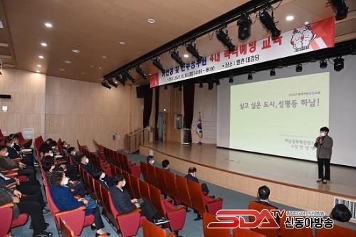 Çϳ²½Ã´Â 4´ë Æø·Â ¿¹¹æ±³À°À» °£ºÎ °ø¹«¿øÀº ¹°·Ð, Àü Á÷¿øµéÀ» ´ë»óÀ¸·Î ½Ç½ÃÇϰí ÀÖ´Ù. ´õºÒ¾î Áö³ 9¿ù ¡®Çϳ²½Ã °íÀ§°øÁ÷ÀÚ ¹ÝºÎÆÐ¡¤Ã»·Å ±³À°¡¯¿¡ À̾î, 10¿ù ¡®2022³â Çϳ² û·ÅÁÖ°£¡¯À» ¿î¿µÇÏ´Â µî û·ÅÇÑ °øÁ÷»çȸ Á¶¼º¿¡µµ ¾ÕÀå¼°í ÀÖ´Ù.