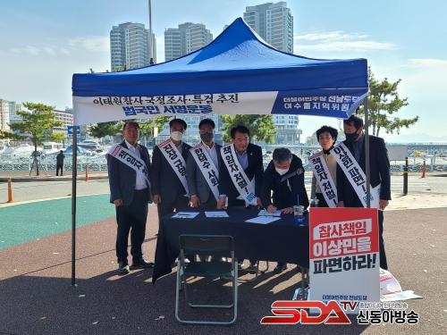 ÇÑÆí, ´õºÒ¾î¹ÎÁÖ´ç ¿©¼ö½ÃÀ» Áö¿ªÀ§¿øÈ¸´Â 10.29 ÀÌÅ¿ø Âü»çÀÇ Áø»óÀ» ±Ô¸íÇϰí Ã¥ÀÓÀÚó¹úÀ» À§ÇÑ ±¹Á¤Á¶»ç ¼ö¿ë°ú Á¤ºÎÀÇ ¼ö»ç ¹× ´ëÀÀÀÌ ¹ÌÁøÇÑ °æ¿ì Ư°ËÀ» ÃßÁøÇÒ ¶§±îÁö õ¸·´ç»ç¸¦ ÀÌ¿ëÇÑ °Å¸® ¼¸í°ú ¿Â¶óÀÎ ¼¸í¿îµ¿ Àü°³Çϰí Á¡½É½Ã°£ ¹× ÃâÅð±Ù ½Ã°£ 1ÀÎ ÇÇÄÏÆÃ µî ½Ã¹Î °ø°¨´ë Çü¼º¿¡ ÃÑ·ÂÀ» ±â¿ïÀÎ´Ù°í ¹àÇû´Ù.