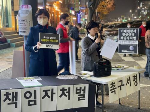 ÃÖ¼ºÀº À§¿øÀåÀº ÅÂÆò¿ª Á¤´ç¿¬¼³È¸¿¡¼ ¡°Âü»ç°¡ ÀÖÀºÁö 20ÀÏÀ̳ª Áö³µÁö¸¸ ¾Æ¹«µµ Ã¥ÀÓÁöÁö ¾Ê°í ÀÖ´Ù¡±¸ç, ¡°¼¿ï µµ½É ÇѺ¹ÆÇ¿¡¼ 156¸íÀÇ Ã»³âµéÀÌ Èñ»ý´çÇߴµ¥, Ã¥ÀÓÁ®¾ßÇÒ »ç¶÷µéÀÌ Âü»ç ´çÀÏ »ý¸íÀ» ±¸ÇÏ·Á°í ¶Ù¾î´Ù´Ñ Àϼ± °æÂû°ú ¼Ò¹æ´ë¿ø¿¡°Ô Ã¥ÀÓÀ» ¹¯´Â Àû¹ÝÇÏÀåÀÇ ¸ð½ÀÀ» º¸À̰í ÀÖ´Ù¡±°í ºñÆÇÇß´Ù.