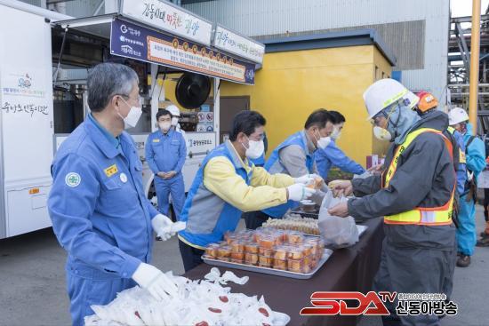 °£½ÄÀº ÃÑ 10°³ÀÇ Æ÷Ç×Á¦Ã¶¼Ò °øÀå¿¡ ÀüÇØÁ³À¸¸ç, Á÷¿øµéÀº ¿Ë±âÁ¾±â ¸ð¿© º¹±¸ÀÛ¾÷À» À§ÇØ È기 ¶¡À» ½ÄÈ÷°í µû¶æÇÑ ¾î¹¬°ú °£½ÄÀ» ¸ÔÀ¸¸ç ´ëÈÀÇ ²ÉÀ» ÇÇ¿ü´Ù.