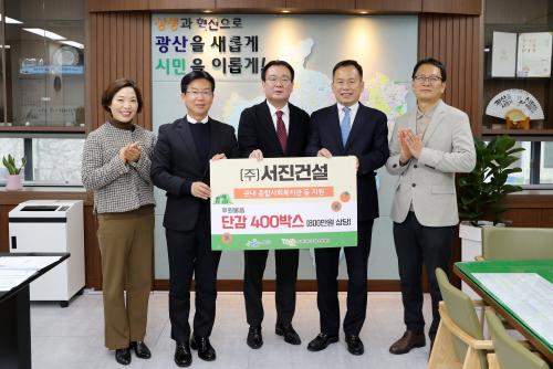 [½Åµ¿¾Æ¹æ¼Û=±èÀçÂù±âÀÚ] ¢ß¼­Áø°Ç¼³ÀÌ 30ÀÏ ±¤»ê±¸Ã»¿¡¼­ Àü´Þ½ÄÀ» °®°í ´Ü°¨ 400»óÀÚ(800¸¸ ¿ø »ó´ç)¸¦ Åõ°Ô´õ±¤»ê ³ª´®¹®È­Àç´Ü¿¡ ±âŹÇß´Ù. ´Ü°¨Àº ±¤»ê±¸ °ü³» »çȸº¹Áö½Ã¼³¿¡ Àü´ÞµÉ ¿¹Á¤ÀÌ´Ù.