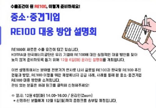 RE100ÀÇ ¿ä±¸Á¶°Ç¿¡ ¸ÂÃß¸é ¿ÀÈ÷·Á ¼öÃâÀÌ À¯¸®ÇØÁ® ½Å±âÈÄüÁ¦ÇÏ¿¡¼´Â RE100ÀÌ ¼öÃâ ±âȸ¿äÀÎÀÌ µÉ ¼ö ÀÖ´Ù. À̹ø ¼³¸íȸ¿¡¼´Â ±â¾÷ÀÌ Àü·ÂÀ» 100% Àç»ý¿¡³ÊÁö·Î Ãæ´çÇÏ´Â ¹æ¹ýÀ» ¾Ë·ÁÁØ´Ù. Âü°¡¸¦ ¿øÇÏ´Â ±â¾÷Àº KOTRA ¹«¿ªÅõÀÚ24À» ÅëÇØ ½ÅûÇÏ¸é µÈ´Ù.