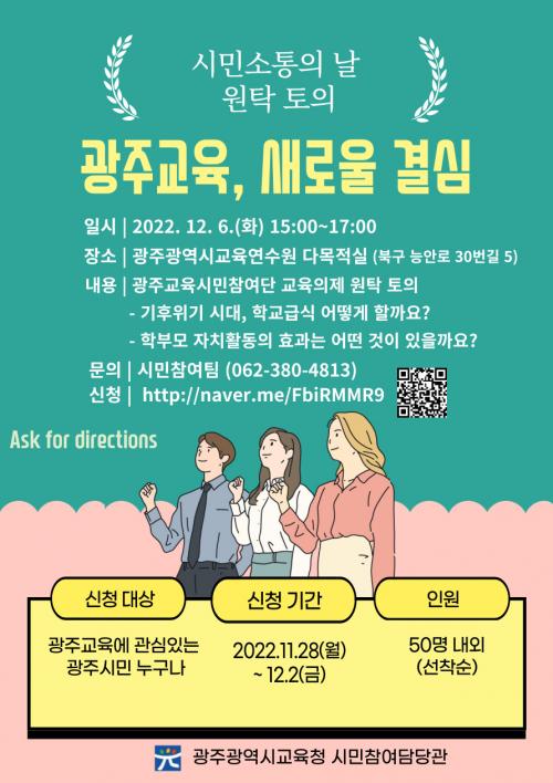 ÇÑÆí ½Ã±³À°Ã»Àº ÇöÀå°ú ¼ÒÅëÇÏ°í ½Ã¹ÎµéÀÇ ÀǰßÀ» °æÃ»ÇϰíÀÚ ¸Å³â µÎ Â÷·Ê ½Ã¹Î¼ÒÅëÀÇ ³¯À» ÁøÇàÇϰí ÀÖ´Ù. ±¤ÁÖ±³À°¿¡ °ü½É ÀÖ´Â ±¤ÁֽùÎÀ̶ó¸é À¥ÆäÀÌÁö(https://naver.me/FbiRMMR9)¿¡¼ ´©±¸³ª ½ÅûÇÒ ¼ö ÀÖ´Ù.