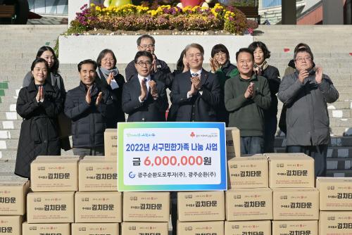 ±èÀ̰ ¼±¸Ã»ÀåÀº 5ÀÏ ¿ÀÈÄ ±¤ÁÖ¼øÈ¯(ÁÖ)(´ëÇ¥ ÀÌ¿µÈÆ)·ÎºÎÅÍ Áö¿ª ³» ±×·ìȨµéÀÇ µû¶æÇÑ °Ü¿ï³ª±â¸¦ À§ÇÑ ±èÀå±èÄ¡ 10kg 100¹Ú½º(600¸¸¿ø »ó´ç)¸¦ Àü´Þ¹Þ°í °¨»çÀÇ ¸¶À½À» ÀüÇß´Ù.