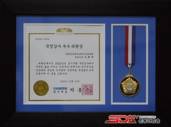 12ÀÏ(¿ù) ´õºÒ¾î¹ÎÁÖ´ç ¹ÚÈ«±Ù ¿ø³»´ëÇ¥´Â ±èȸÀç ÀÇ¿øÀÌ ¡°¹Î»ý¡¤Á¤Ã¥¡¤±¹¹Î ±¹°¨À» ¼±µµÇÏ¿© À¯´ÉÇÑ ¹ÎÁÖ´çÀÇ Áø¸é¸ñÀ» º¸¿´´Ù¡±¸é¼ ¡®2022³â ±¹Á¤°¨»ç ¿ì¼öÀÇ¿ø¡¯À¸·Î ±èȸÀç ÀÇ¿øÀ» ¼±Á¤Çß´Ù. ¼¿ï½Å¹®ÀÇ ¡®2022³âµµ ±¹Á¤°¨»ç ¿ì¼öÀÇ¿ø¡¯ ¼±Á¤¿¡ ÀÌÀº 2°ü¿ÕÀÌ´Ù.