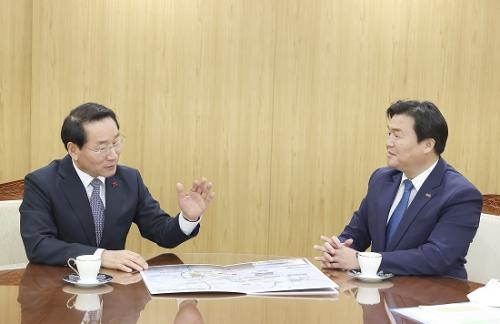 °£´ãȸ ÀÚ¸®¿¡¼ ÀÓ ½ÃÀåÀº ¡°¼Çظ¦ »çÀÌ¿¡ µÎ°í ¸¶ÁÖº¸´Â ½ÃÈï½Ã¿Í ÀÎõ±¤¿ª½Ã´Â ¼Ò·¡»ê ¹× ¼Ûµµ¡¤½ÃÈï°¹°ñ µîÀ» °øÀ¯Çϸç Áö¸®ÀûÀ¸·Î ¹ÐÁ¢ÇÑ °ü°è¿¡ ÀÖ´Â ¸¸Å, »ó»ý ¹ßÀüÀ» À§ÇØ »óÈ£ Çù·ÂÀ» ÇØ³ª°¡ÀÚ¡±°í Á¦¾ÈÇß´Ù.