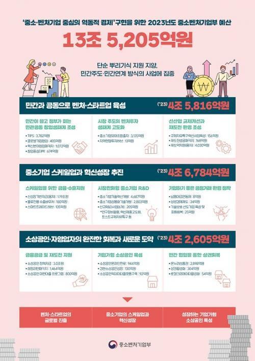 Áß±âºÎÀÇ 2023³â ¿¹»êÀº ➊¹Î¡¤°ü °øµ¿ º¥Ã³‧½ºÅ¸Æ®¾÷ À°¼º, ➋Áß¼Ò±â¾÷ ½ºÄÉÀϾ÷°ú Çõ½Å¼ºÀå ÃßÁø, ➌¼Ò»ó°øÀΡ¤ÀÚ¿µ¾÷ÀÚÀÇ ½Å¼ÓÇÑ È¸º¹°ú »õ·Î¿î µµ¾à µî 3´ë ÁßÁ¡ÅõÀÚ ¹æÇâ¿¡ ÃÊÁ¡ÀÌ ¸ÂÃçÁ³´Ù.