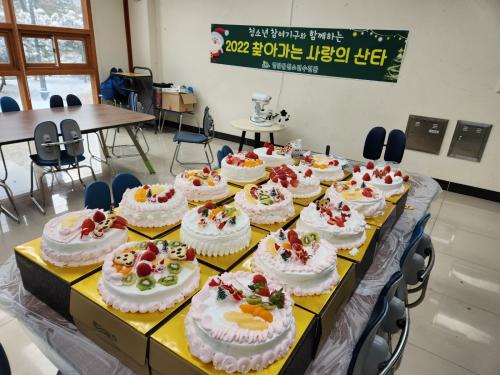{½Åµ¿¾Æ¹æ¼Û=¹Ú¼º¼ö±âÀÚ]¿¬¸»¿¬½Ã¸¦ ¸Â¾Æ Áö¿ªÀÇ ¾Æµ¿µé°ú ÇູÀ» ³ª´©°í µû¶æÇϰí Èñ¸ÁÂù Áö¿ª»çȸ ºÐÀ§±â Á¶¼ºÀ» À§ÇØ ¸¶·ÃÇÑ À̹ø Çà»ç´Â û¼Ò³â¼ö·Ã°ü Âü¿©±â±¸ ¼Ò¼Ó û¼Ò³â 15¸íÀÌ Âü¿©ÇßÀ¸¸ç, ¾ÆÄ§ ÀÏÂïºÎÅÍ ¸ð¿© Á÷Á¢ ¸¸µç ÄíŰ¿Í Å©¸®½º¸¶½º ÄÉÀÌÅ© 75°³¸¦ °ü³» Áö¿ª¾Æµ¿¼¾ÅÍ¿¡ Àü´ÞÇß´Ù.