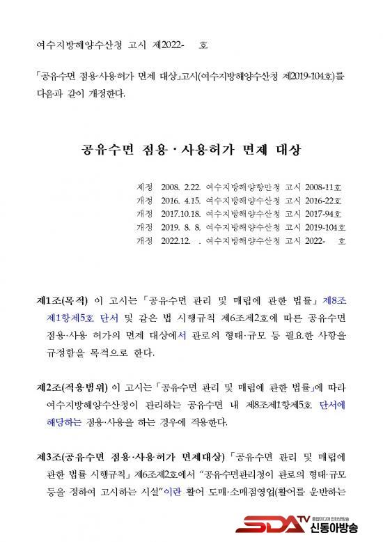 ¡¸°øÀ¯¼ö¸é Á¡¿ë‧»ç¿ëÇã°¡ ¸éÁ¦ ´ë»ó °í½Ã¡¹ÀÇ ÀϺΰ³Á¤ »çÇ× ¹× ¸éÁ¦´ë»óÀÇ ÀÚ¼¼ÇÑ »çÇ×Àº ¿©¼öÁö¹æÇؾç¼ö»êû ´©¸®Áý(https://yeosu.mof.go.kr)°ú ±¹°¡¹ý·ÉÁ¤º¸¼¾ÅÍ(https://www.law.go.kr)¿¡¼ È®ÀÎÇÒ ¼ö ÀÖ´Ù.