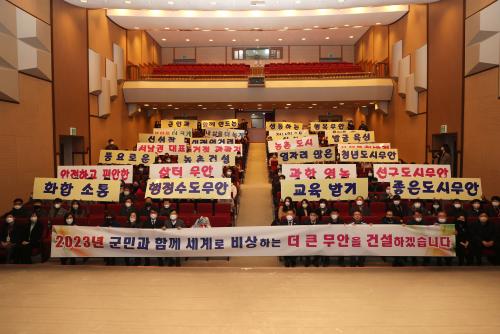2ÀÏ ±º¿¡ µû¸£¸é ¿ÀÀü 8½Ã 30ºÐ ÃæÈ¥Å¾ Âü¹è¸¦ ½ÃÀÛÀ¸·Î ½Ã¹«½Ä¿¡¼ 2023³â ±ºÁ¤¹æÇâ ¼³¸í, Á÷¿ø°ú ºÎ¼ÀÇ ½Å³â¸Þ½ÃÁö ¿µ»ó ½Ãû, °øÁ÷ÀÚ Ã»·Å½Çõ °áÀǹ® ³¶µ¶, ±ºÁ¤´ÙÁü ÆÛÆ÷¸Õ½º ±â³äÃÔ¿µ µîÀÇ ¼øÀ¸·Î »õÇØ ¾÷¹«¸¦ ½ÃÀÛÇÏ¿´´Ù.