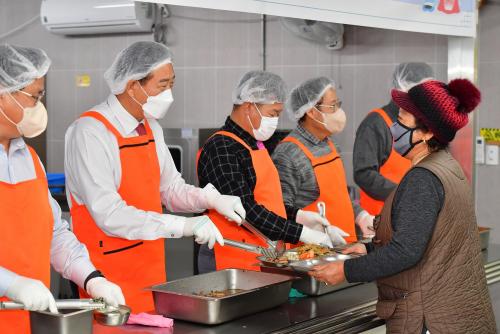 [½Åµ¿¾Æ¹æ¼Û=À̺´±¸±âÀÚ]±èÇÑÁ¾ À强±º¼ö¿Í °íÀçÁø À强±ºÀÇȸ ÀÇÀå, ÀÇ¿ø µî 10¿© ¸íÀÌ 2ÀÏ Á¡½É½Ä»ç ½Ã°£¿¡ ¸ÂÃç ³ëÀκ¹Áö°ü °æ·Î½Ä´ç¿¡¼­ ¹è½Ä ºÀ»ç¿¡ ³ª¼¹´Ù. °ø°ø½Ç¹öÁÖÅà ´©¸®Å¸¿î 1Ãþ¿¡ À§Ä¡ÇÑ ³ëÀκ¹Áö°üÀº ÁÖ 5ȸ 150¿© ¸íÀÇ °í·É Áֹο¡°Ô ¹«·á ±Þ½ÄÀ» Á¦°øÇϰí ÀÖ´Ù.